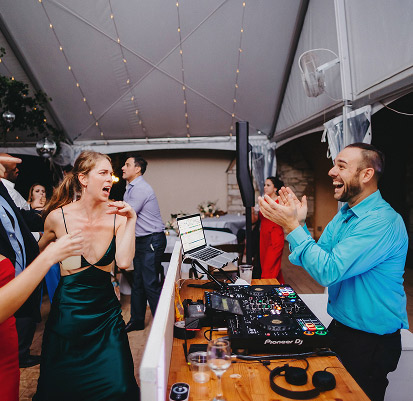 YES! Part of our planning process is having you send us a playlist. If you don’t have time to plan a playlist, let us know what genres would suit your party or guests best. We also ask what are your must-play songs and DON’T PLAY songs. Our DJs will also read the crowd to ensure the vibe stays elevated – and everyone is enjoying the party you worked so hard to create.